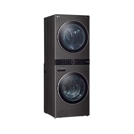 Lavadora secadora en torre a gas Lg WK22BS6E 22 kg 110v centro de lavado steam color acero negro