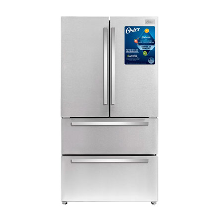 Refrigeradora Oster OS-FDNFS1900VI 544 litros french door side by side compresor inverter color crom